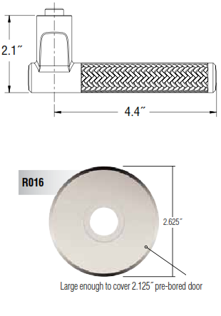 Please note: The Baldwin Estate L015 Lever Set comes with the R016 Rose to cover a typical 2 1/8" bore. Please call our customer service department if you need to order this set for a 5/8" bore hole or require a different rose style.