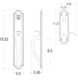 - Accommodates door thickness of 1.75" to 2.25" thick doors.