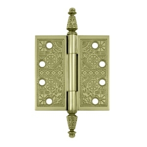 Deltana solid brass hinges are available in an array of finishes with superior luster and shine. Deltana Ornate solid brass hinges come standard with Ornate finials, stainless steel barrel pins, and true solid brass screws.